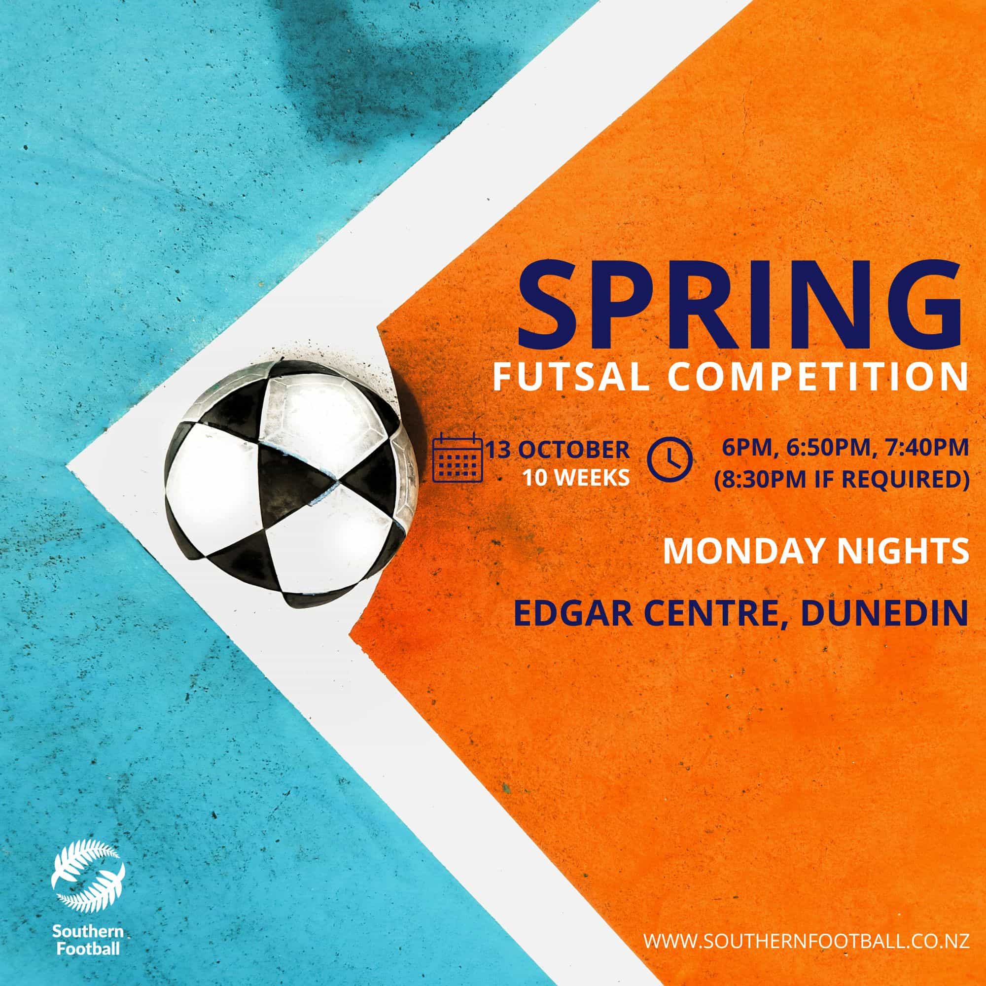Join us for 10 weeks of social futsal at the Edgar Centre, Dunedin, kicking off Monday 13 October.